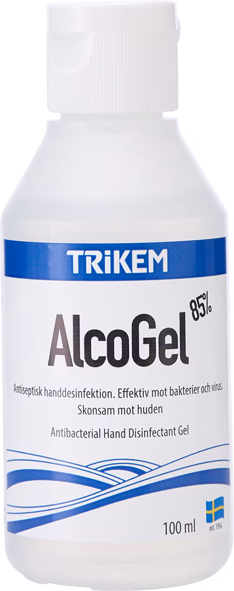 Alcogel är en snabbverkande, klibbfri och bakteriedödande gel för desinfektion av händerna. Torkar ej ut huden utan den behåller sin naturliga fuktbalans genom tillsatsen av glycerin.